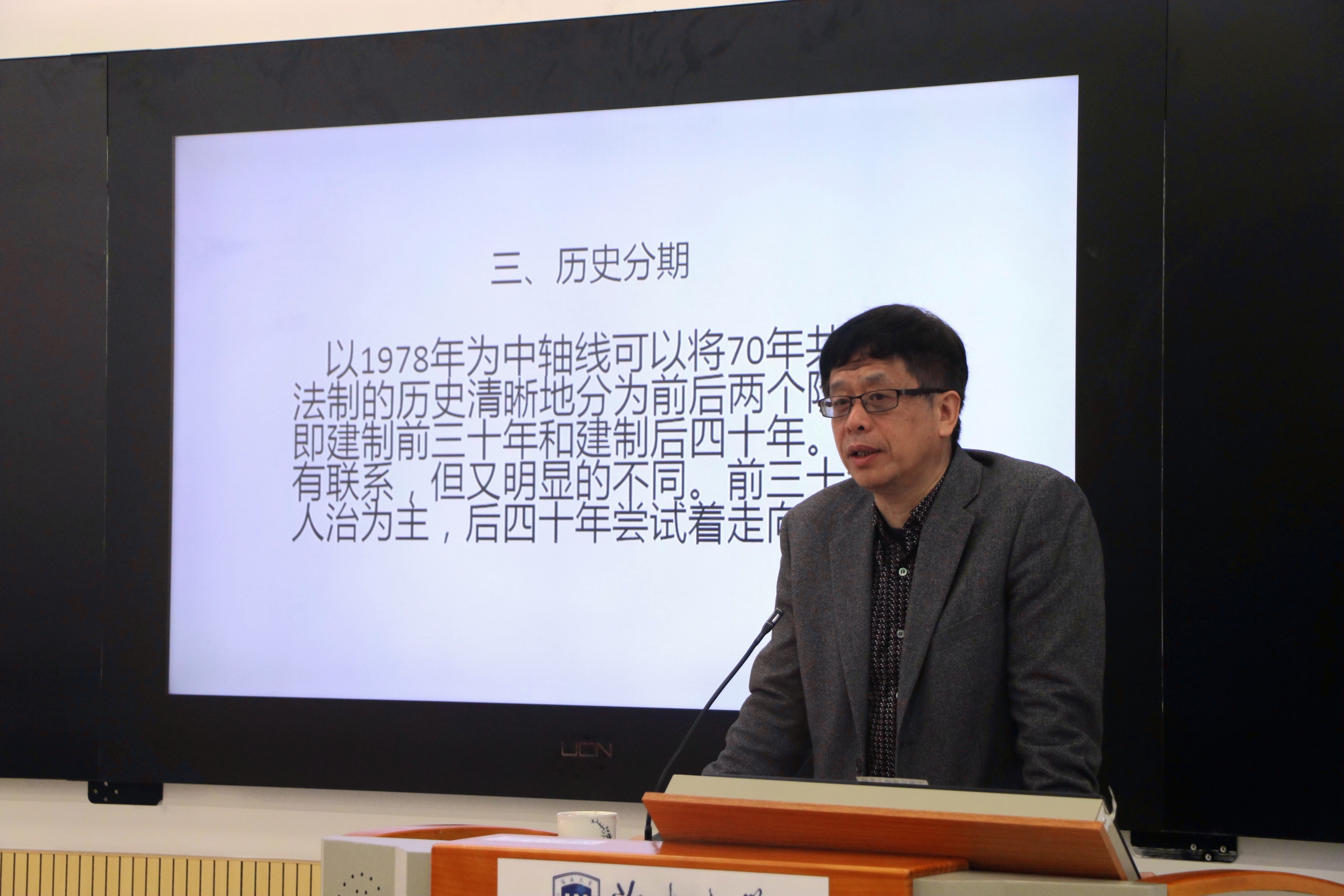 侯欣一教授的授课主题为“法治中国建设的历史与现实”。侯教授从为什么要开设这节课引入,进而指导同学们通过研究文献的方法,包括研究执政党的文件汇编和指导文集,立法资料,志书,报纸、杂志和年鉴,案例汇编,工作总结,传记和年谱以及当事人回忆录等口述史材料来研究中华人民共和国的法制史。接着,侯教授讲解了我国法制史的历史分期和构成元素,帮助同学们理清了我国法制史的框架。侯教授还告诫同学们,进行历史研究学习,应该保持尊重历史、实事求是的学习态度。最后,侯教授带领同学们系统学习了中华人民共和国的法治进程。