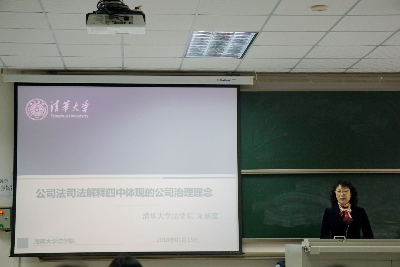 2018年1月15日全天及1月16日上午,清华大学法学院朱慈蕴教授应邀做客法学院冬季小学期,在七号教学楼201教室为法学院2015级本科生授课。本次授课,旨在带领同学们了解《最高人民法院关于适用若干问题的规定(四)》发布后公司法的前沿问题。