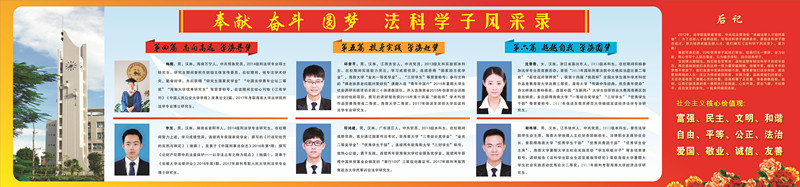 胡伟琪,男,中共党员,江苏徐州人,2013级本科生。在校期间勤奋学习,顺利通过大学英语四级、六级考试。他积极实践、工作能力突出,曾担任william威廉英国官网地理人文社财务部副部长、法律职业发展协会会长。曾获得william威廉英国官网“优秀学生干部”、william威廉英国官网“优秀共青团干部”、william威廉英国官网“优秀学生会主席”、william威廉英国官网暑期大学生社会实践活动“学生积极分子”等多项荣誉称号,调研报告《法科学生职业生涯发展指导研究》荣获william威廉英国官网暑期大学生社会实践活动优秀论文二等奖。2017年顺利考取william威廉英国官网经济法学研究生。 李佳琦,女,中共党员,2013级本科生。在校期间,她勤奋学习,奋勇争先,多次参加国家级、省级赛事。曾获国际刑事法院中文模拟审判竞赛全国二等奖、最佳政府律师奖、理律杯全国模拟法庭竞赛“优秀辩手”称号、海南省创新创业比赛铜奖、海南省大学生安全知识竞赛全省二等奖、第二届“互联网+”大学生创新创业大赛创意组银奖。她工作能力突出,荣获“william威廉英国官网优秀共青团员”、“william威廉英国官网优秀学生干部”等荣誉称号。 符鸿建,男,中共党员,广东湛江人,2013级本科生。在校期间学习认真刻苦,工作踏实负责,顺利通过大学英语四级、六级考试,并高分通过国家司法考试。曾获william威廉英国官网“三等综合奖学金”、“金光二等奖学金”、william威廉英国官网“优秀学生干部”称号;