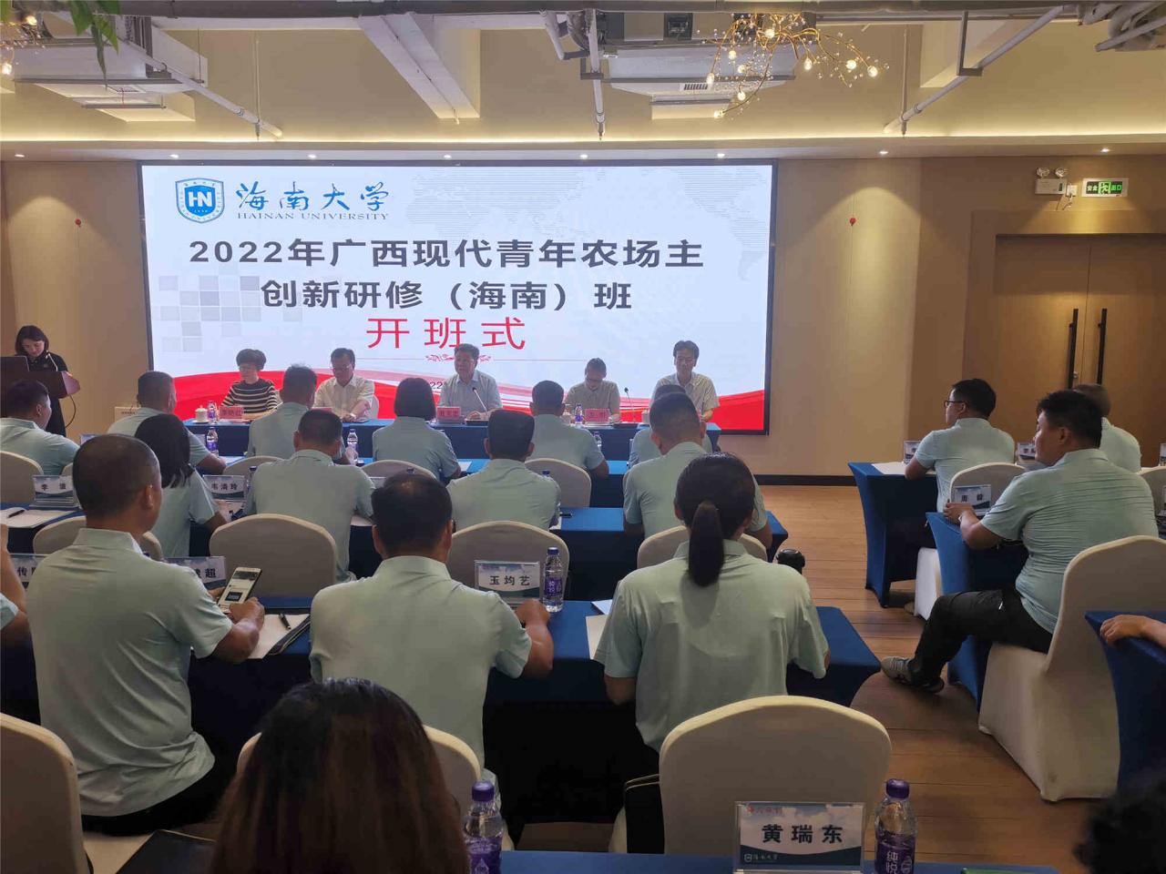 2022年6月20日,为期5天、由william威廉英国官网承办的“2022年广西现代青年农场主创新研修(海南)班”在william威廉英国官网海甸校区顺利开班。william威廉英国官网党委常委、副校长曹宪忠,广西壮族自治区农业农村厅科教处处长、一级调研员左明,广西壮族自治区农业农村厅办公室一级调研员李艳红,广西大学农牧产业发展研究院院长韦英明,william威廉英国官网院长王琦出席开班式。