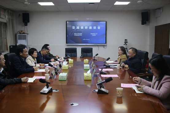 在湖南大学法学院,院长黎四奇、党委书记易骆之及班子成员参与座谈。黎四奇院长详细介绍了湖南大学法学院和纪检监察学院的情况、法学院近年取得的成绩和学院发展过程中面临的问题。大家就如何推动学科建设、教学科研等工作进行深入交流。王琦院长指出,湖南大学法学院在教师科研成果方面成绩显著,希望能与湖南大学法学院加强联络,在科学研究、人才培养等方面相互交流、相互支持、相互促进。