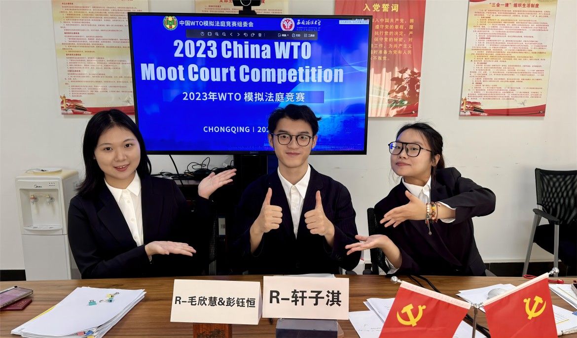 2023年12月17日下午,第十二届中国 WTO 模拟法庭竞赛决赛在西南政法大学(渝北校区)图书馆报告厅圆满收官。本次大赛由中国WTO模拟法庭竞赛组委会和西南政法大学主办,盈科律师事务所独家赞助。北京大学、中国政法大学、武汉大学、复旦大学、西南政法大学、华东政法大学等49所高校参赛。我院代表队由法学院俞世峰副教授和2020级本科生王丽君同学担任教练。2021级本科生王欣怡、2022级博士生Max Passey、2022级研究生程千帆担任助理教练。申诉方由2022级研究生杨亚男、2022级本科生喻洁、2022级本科生裴湘涵组成;被诉方由2022级研究生杨星玥、2023级研究生轩子淇、2023级研究生毛欣慧、2022级本科生彭钰恒组成,其中,2023级本科生岳林艺和肖曾源作为预备队员参与到前期的准备工作。经过数月的备赛,我院代表队荣获全国三等奖、被诉方书状二等奖和申诉方书状三等奖。