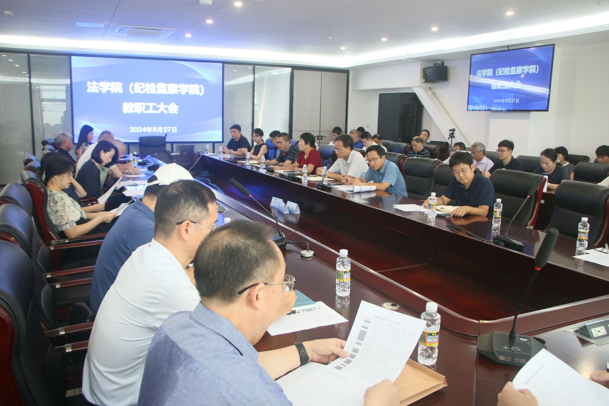为做好新学期开学各项准备工作,扎实推动学院年度重点工作落地见效,8月27日下午,学院在法学科研大楼301会议室召开新学期教职工会议。学院领导班子成员、全体教职工参加会议,会议由学院党委书记蒙秋妍主持。