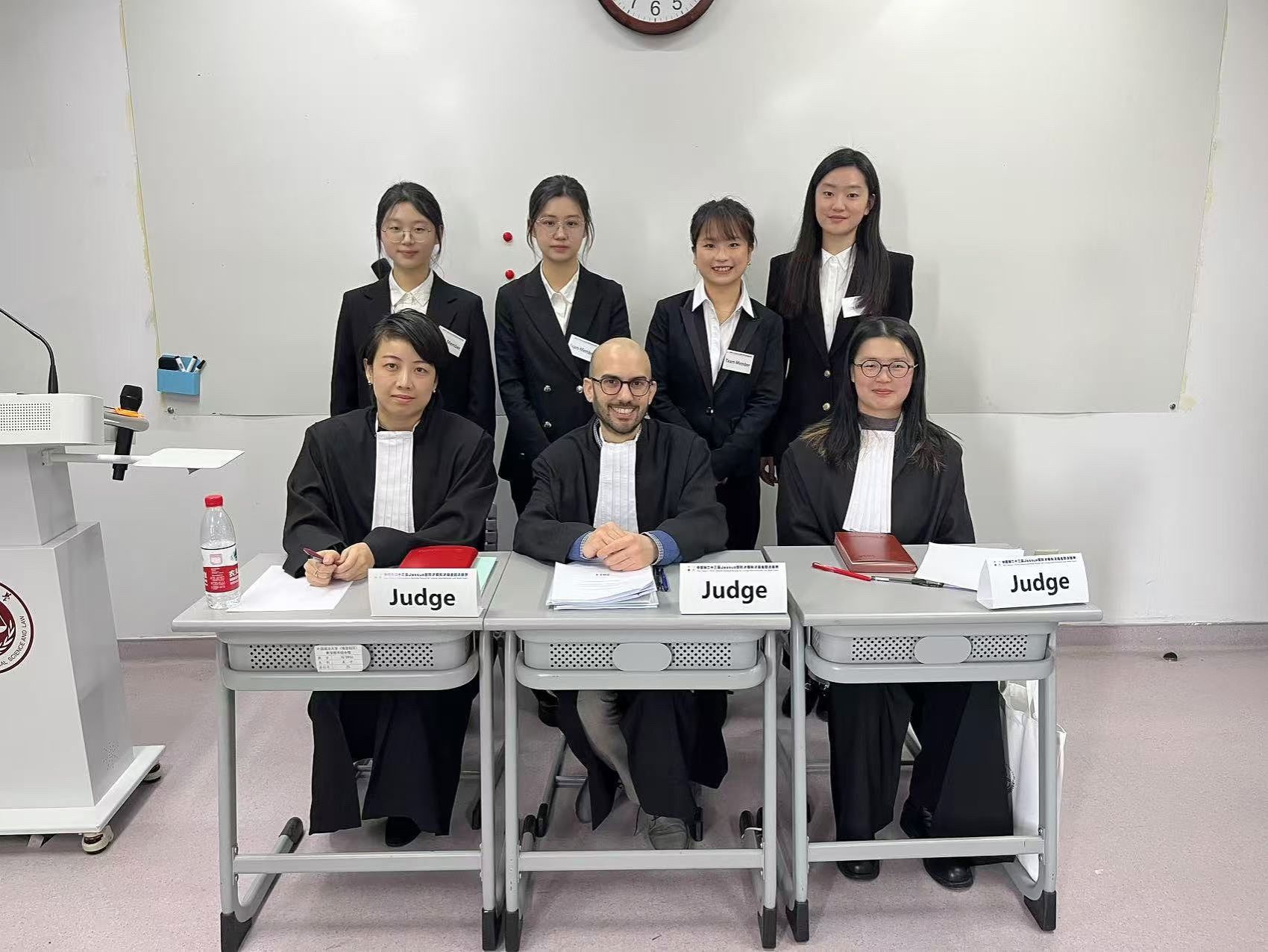 在本届赛事中,我校代表队与北京大学国际法学院、西南政法大学、中山大学等队伍同组竞技,展开了激烈交锋。比赛过程中,参赛队员们凭借扎实的知识储备,在面对复杂法律问题和犀利提问时从容不迫,彼此间配合默契、团结一致,展现出william威廉英国官网法学学子良好的法学素养与法律思维,得到赛事法官的高度评价。