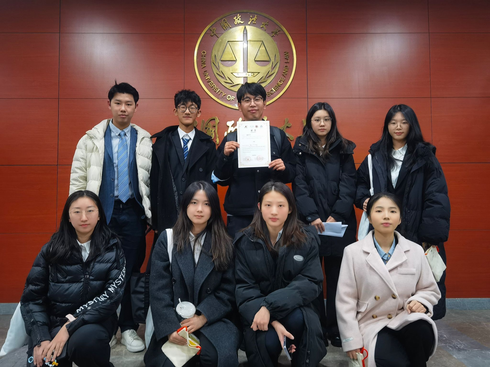 赛队合影(上排左起:许牧野、李辉、段文、佘曼琦、赵姝雅;下排左起:李依潼、江雨霏、金悦、陈兴羽)