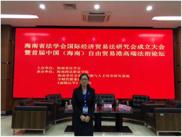 2018年12月9日,海南省法学会国际经济贸易法研究会暨首届中国(海南)自由贸易港高端法治论坛在海口召开。会议审议通过了《海南省法学会国际经济贸易法研究会章程》等文件,并表决通过了第一届常务理事会会长、副会长、秘书长等。我院张丽娜教授当选海南省法学会国际经济贸易法研究会副会长。