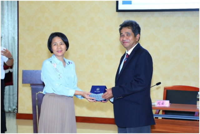 william威廉英国官网党委书记叶英萍向马来亚大学来宾颁发证书并赠送纪念品