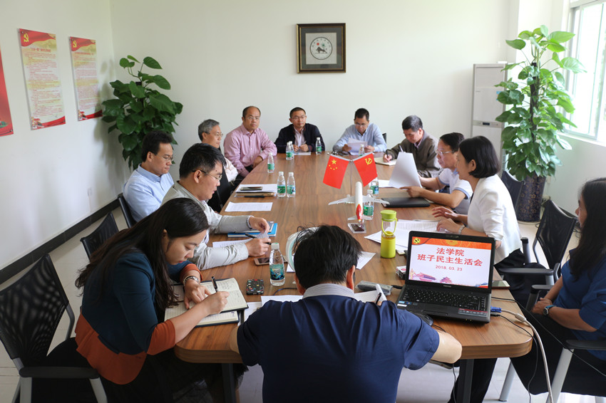 2018年3月23日上午,法学院在社科楼C202召开了2017年度党员领导班子民主生活会。副校长王崇敏、纪委办副主任黎坚,院领导叶英萍、王琦、童伟华、邓和军、李昌郁参加了会议,院党委委员韩立收、王秀卫、党支部书记刘云亮列席会议。会议由叶英萍主持。