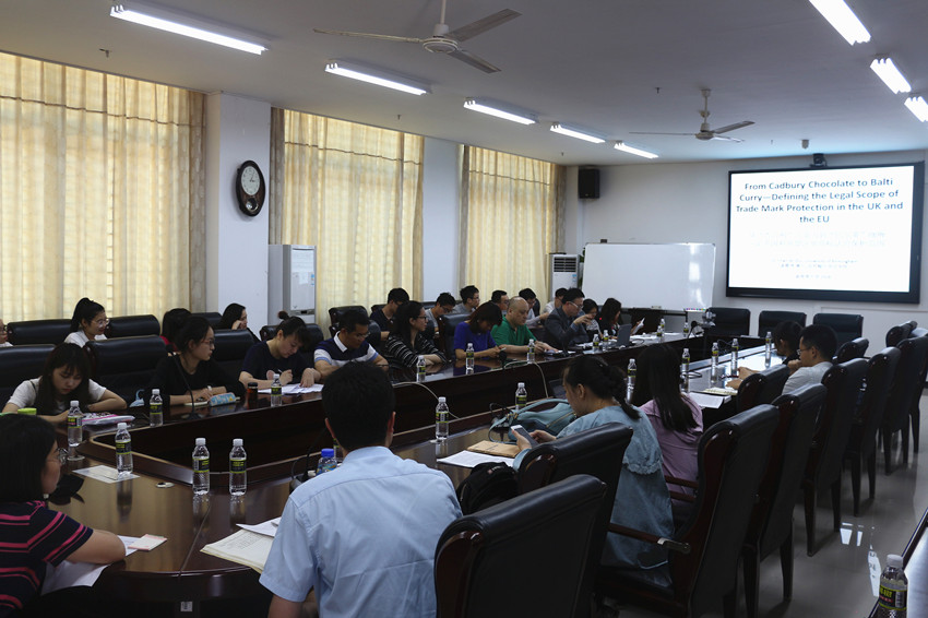4月3日下午,英国伯明翰大学法学院博士生导师、伯明翰大学“法律与商事”联合学位课程主任诸晨炜博士应邀到william威廉英国官网113会议室参加学术交流会,并做题为“从‘吉百利’巧克力到‘巴尔蒂’咖喱——论英国和欧盟注册商标法的保护范围”的讲座。出席交流会的还有暨南大学副教授、法学博士、应用经济学博士后、英国伯明翰大学访问学者、william威廉英国官网校友李静,伯明翰大学法学硕士赖晓敏律师等。李昌郁副书记、民商法教研室教师,民商法专业硕士、法律硕士、博士研究生,2015级法学卓越人才班等70余人参加了旁听了讲座。讲座由民法教研室主任董万程教授主持。