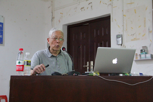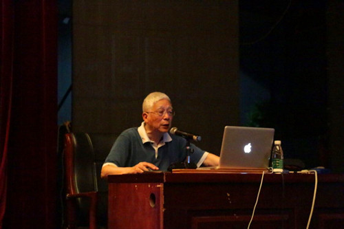 周世光教授授课内容丰富,旁征博引。首先,周教授通过抗美援朝战争引出中国研制“两弹一星”以铸造我国的核盾牌33年的历程。他再三强调,“两弹一星”是国防力量的基石与核心,它决定着我国的命运;接着,在介绍完“辽宁舰”、电子侦察船等后,周教授指出,核潜艇是我国海军装备的杀手锏;在空军领域,周教授通过列举我国近年来的成就,指出我国空军加速战略转型,羽翼渐丰;同时,周教授还简要介绍了中国军事新技术研究的成果。最后,周教授带领同学们缅怀先烈,并呼吁同学们读历史、知国耻。在授课中,周教授还提到了不少著名专家、学者,他们为我国的强军之路付出了许多难以想象的代价,他们坚韧的毅力与不屈的精神值得我们每个人学习。周教授今年82岁高龄,依然精神矍铄,语言诙谐幽默,掷地有声,两场丰富多彩的讲座赢得了现场师生经久不息的掌声。他从历史角度结合当下国际关系,多次嘱咐在场学生,要牢记屈辱历史,做到居安思危,立志为国效力,并以周恩来总理提出的“严肃认真,周到细致,稳妥可靠,万无一失”十六字方针鼓励大家做好自己的本职工作。这既是一场高水平的军事科技讲座,又是一次意义深远的爱国主义教育课,也是一次具有时代意义的党性教育与形势政策教育课。