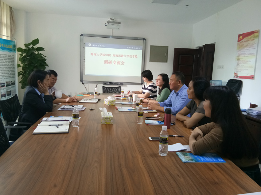2018年11月30日上午,西南民族大学法学院分党委书记郝洪刚一行5人到我院进行调研交流。我院党委书记叶英萍、副书记李昌郁,国际法学教研室主任张丽娜教授、辅导员王杜娟参加了交流会。