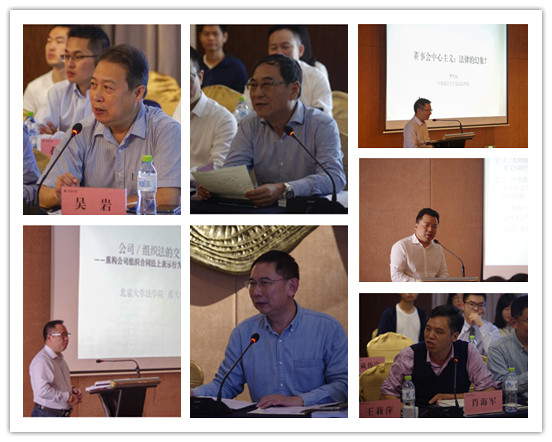 会议的第一个单元“公司重大资产处分的基础”,由《法学论坛》吴岩主编与中国法学会商法学研究会副会长、中山大学法学院周林彬教授主持;西南政法大学民商法学院曹兴权教授作了题目为《董事中心主义:法律的幻象吗?》的报告;中国法学会商法学研究会秘书长、中国政法大学民商经济学院李建伟教授作了题目为《重申股东利益至上主义》的报告;北京大学法学院蒋大兴教授作了题目为《组织法与合同法的交叉——重构公司组织合同法上表示行为的法律逻辑》的报告。中国法学会商法学研究会副会长、西南政法大学民商法学院赵万一教授和湖南大学法学院肖海军教授参与了与谈环节。