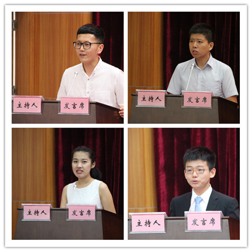 2013级民商法博士郑志涛、2013级法律硕士沈新策、2012级本科生栾安琪分别毕业生发表了毕业感言。2014级本科实验班陈奥鑫同学代表在校学生对帮助自己的成长的学长学姐们表示感谢,并祝愿学长学姐们带着学术的智慧,生活的理想,开启人生新篇章。