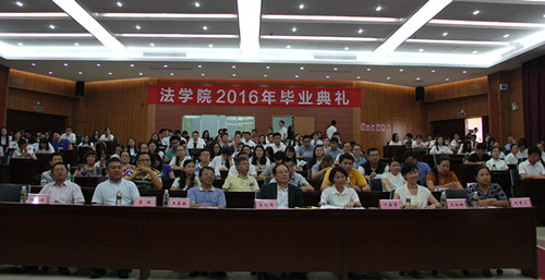 法学院常委副院长叶英萍教授在典礼上介绍了学院2016年毕业生基本情况。她说,法学院2016年共有毕业生303人,其中本科生142人,硕士研究生158人,博士研究生3人;本科生司法考试通过率为32.74%,本科生考研率为23.2%;硕士研究生司法考试通过率61.4%,获得国家级奖励14人次,7人考取博士研究生;3位博士毕业生在校期间均有多篇论文发表于核心期刊,参与国家社科基金项目,获得研究生国家奖学金等多项荣誉和奖励。同时,她向毕业生送上真诚的祝福,希望毕业生勤勉工作,常怀感恩之心,不断进步。