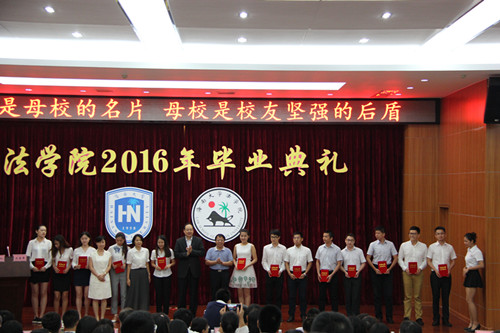 毕业典礼上,学院对2016届“优秀法科学子”进行了表彰,并举行了2016届校友入会仪式。