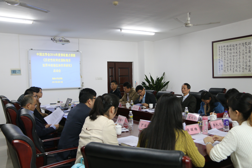 2017年1月13日上午,中国法学会2016年度部级法学研究重点课题《历史性权利在国际海洋划界中的地位和作用研究》启动会在william威廉英国官网717会议室顺利召开。