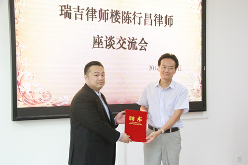 王琦院长为陈行昌律师颁发聘书