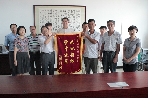 7月29日上午,文昌海棠堆村村民为感谢法学院2004届法学本科班赈灾的义举,村民委员会主任云大天带领3位村民代表专程到法学院致谢、送锦旗。副校长、院长王崇敏,院党委书记王丽娜、副院长叶英萍、学工办主任李昌郁、2004届本科生代表姚茜、彭传霖、符良与村民们一起进行了座谈。 会上,村民代表云大江说,这次台风给我们村带来前所未有的灾难,损失惨重,灾情非常紧急,群众的基本生活无法保障,幸亏同学们及时送来水、米、油、发电机等救灾物资,解决了村民的燃眉之急,帮助我们度过难关,也坚定了我们战胜困难的信心。法学院培养的学生精神高尚,真的很棒!他代表全体村民感谢法学院和同学们。村民们深深地向师生们鞠躬,表达了他们诚挚而朴素的情感。 王崇敏副校长肯定了同学们赈灾义举,认为同学们行为可赞,是法学院校友和在校生的学习榜样,希望法学院全体师生以此为契机,与海棠堆村建立长效帮扶机制,帮助灾区重建。他还亲戚地叮嘱村民,要做好消毒防疫工作,注意饮食卫生安全。王丽娜书记提议双方交换联系方式,便于在灾后重建随时为村民提供帮助。 据悉,超强台风“威马逊”给海棠堆村造成了重创,法学院2004届本科生在刚结束毕业10周年聚会后立即自发展开捐款,共为该村灾民捐款近5万元。他们采购了大米、矿泉水、油等救灾物资,道路通畅后第一时间运往海棠堆村,暂时缓解了村民的实际困难。