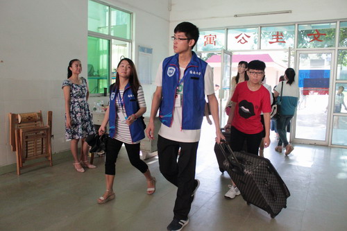 志愿者们正在接待新生