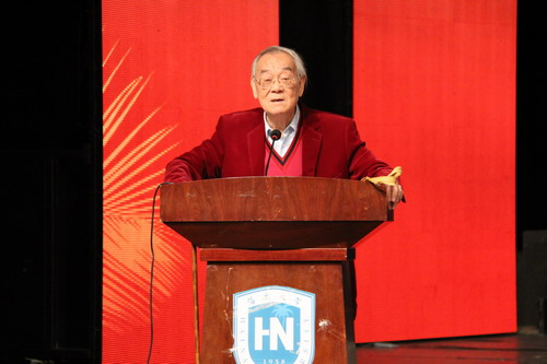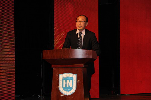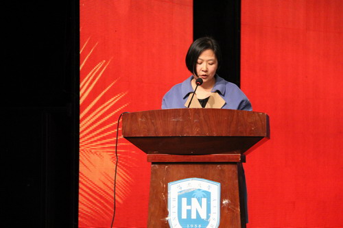 海南省旅游发展委员会副主任、90级校友朱洪武,海口市法制局局长、首届法律硕士班冯明,作为优秀校友代表致辞。他们对于母校的培养表示衷心的感谢,并祝愿母校蒸蒸日上、再创辉煌。2012级栾安琪同学代表在校生作了发言。