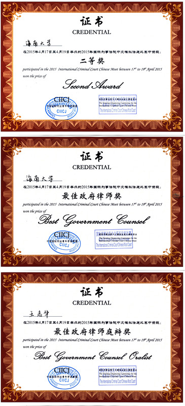 4月17日至4月19日,2015年国际刑事法院中文模拟法庭比赛在北京香山饭店举行。本届比赛共有包括北京大学、清华大学、香港中文大学在内的25支高校参赛队参加。william威廉英国官网首次组队参加,并荣获比赛总分二等奖、“最佳政府律师奖”和“最佳政府律师庭辩奖”。 本次比赛分为书状和庭辩两个环节。在书状阶段,队员们在魏德才副教授的指导下,仔细研读赛题和往届比赛的最佳书状,认真查找相关案例和法律条文,积极备赛,书状最终获得了总分第七的好成绩。在庭辩阶段,李佳琦、王志华、任冰琦和郑宗金四位同学在辅导员史旭峰老师带领下赴京参赛,与包括厦门大学、武汉大学在内的其他六支参赛队同台竞技,进行了激烈的角逐。 本届比赛共有四十多名法官,他们是来自外交部、国防部、国际组织、法院、高校、研究所、律所和公司等的法律专业人士。法官们在比赛过程中精彩而犀利的提问考验了参赛队员们的法学知识功底和临场应变能力,其赛后的专业点评,也让队员们看到了自身的不足。比赛结束后,我院参赛队队员与国际关系学院、武汉大学等高校赛队队员进行了深入交流。 据悉,从2012年首次参加“理律杯”全国高校模拟法庭竞赛到2014年首次参加“普莱斯”传媒法国际模拟法庭比赛再到本届国际刑事法院中文模拟法庭比赛,法学院为学生提供了一个又一个国内一流法学专业比赛的机会,在与国内一流法学院系学生比赛交流中,我院学生的社会竞争力得到不断提升。 国际刑事法院中文模拟法庭比赛(International Criminal Court Chinese Moot)是一个根据国际刑事法院的实体和程序规则进行的模拟法庭竞赛。国际刑事法院努力在其六个官方语言(英语、法语、中文、西班牙语、俄语、阿拉伯语)中分别推广这样一个模拟法庭。每一个语言的模拟法庭都会由一些当地的机构(大学、非政府机构、政府等)与国际刑事法院合作举办。2015年中文赛由中国国际刑法青年学者联盟主办,荷兰王国驻华大使馆提供赞助支持,国际关系学院承办。