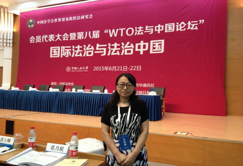 6月21至22日,中国法学会世界贸易组织法研究会在北京举行了换届大会暨2015年年会,此次会议由中国法学会世界贸易组织法研究会和中国人民大学法学院共同主办,中国人民大学法学院承办,共有来自全国高校、科研院所、政府部门的代表200多人参加了此次会议。法学院张丽娜教授应邀出席了此次会议,并在大会换届选举中当选为常务理事。