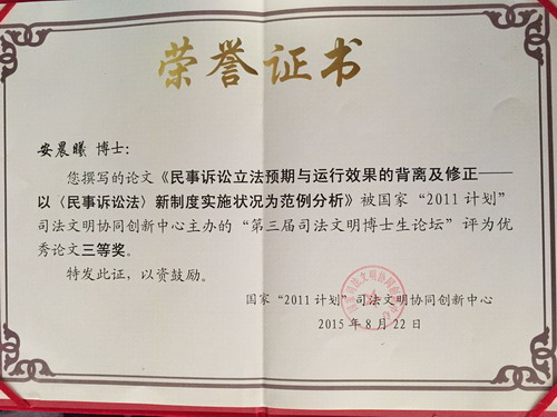 由国家“2011计划”司法文明协同创新中心主办,中国政法大学、浙江大学、吉林大学、武汉大学协办的“第三届司法文明博士生论坛”于8月22日-23日在北京举行。本次论坛的主题为“司法文明与司法改革”。我院诉讼法学专业2013级博士研究生安晨曦受邀参加了本次论坛,其所提交的作品《民事诉讼立法预期与运行效果的背离及修正——以新制度实施状况为范例分析》获三等奖,并在“司法程序”分论坛中作了发言。 论坛于8月22日上午开幕,中国政法大学证据科学研究院副院长张中主持开幕式。中国政法大学副校长李树忠教授、国家“2011计划”司法文明协同创新中心联席主任张保生教授以及部分教师代表、全国25所知名法学院校的博士生参加了开幕式。在开幕式致辞中,各嘉宾对司法文明协同创新中心进行了介绍,表达了对司法文明协同创新中心所取得成绩的肯定。?本次论坛收到82位博士生投稿,论坛主办方本着公平公正的原则,对所有稿件进行了双向匿名评审。22日-23日,50位博士生参加了涵盖“司法文明理论、司法文明史、司法改革问题、司法程序问题、司法文明指数”主题的学术研讨活动。每个单元的学术讨论过程中,报告人、评议人、指导老师和与会同学积极参与,彰显了追求学术、热爱学术的法律人风格。 23日下午,第三届司法文明博士生论坛圆满结束。闭幕式上,中国法学会副会长、学术委员会主任、司法文明协同创新中心理事长兼联席主任张文显出席并讲话。讲话中,张老师首先肯定了本次论坛所取得的成绩,并就今后如何开展好博士生论坛、如何进行有效的学术对话、如何有效地提出命题等提出了宝贵的指导意见。//www.hainanu.edu.cn