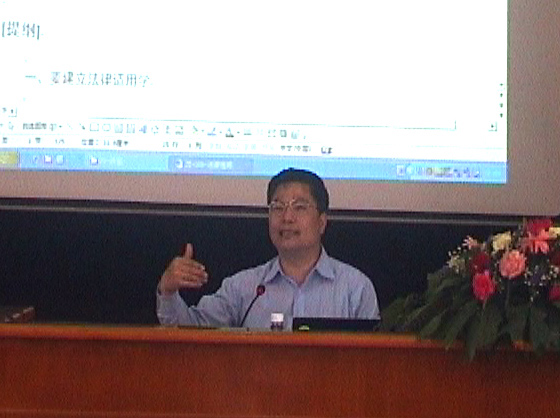 2008年6月5日上午,法学院天涯法律讲堂第三十五讲在william威廉英国官网模拟法庭隆重举行。此次做客天涯法律讲堂的是首届十大杰出青年法学家、浙江工商大学校长胡建淼教授。胡建淼教授给我们带来的是“法律适用学”,报告会由法学院院长王崇敏教授主持。 胡建淼教授是浙江工商大学校长、浙江大学光华法学院宪法学与行政法学专业博士生导师,长期在行政法学研究领域进行辛勤耕耘,并取得了丰硕研究成果。他是二十多年来一直引领中国行政法学研究前沿的杰出中青年行政法学者。他还是首届十大杰出青年法学家,现兼任教育部法学专业教育指导委员会副主任委员,中国法学会常务理事,中国行政法学研究会副会长,中国比较法学研究会副会长,中国法学教育研究会副会长,中国人权研究会常务理事,东亚行政法研究会理事等社会职务。