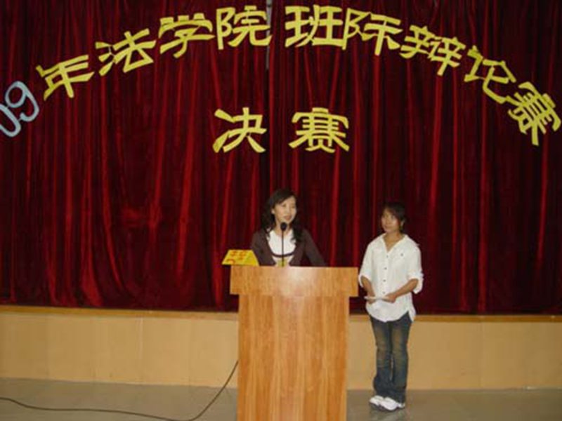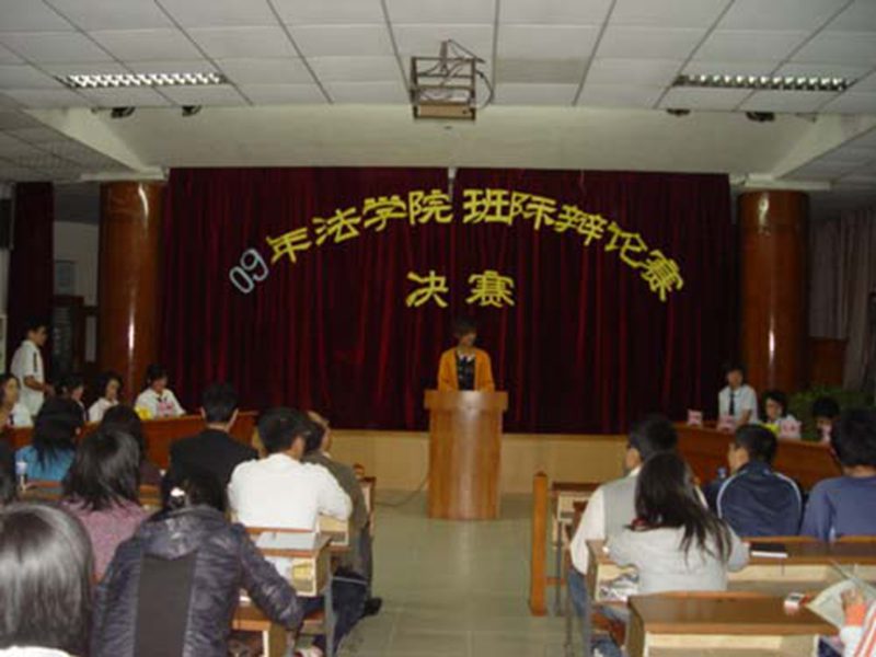 4月7日晚19:30法学院2009年“法之锋”杯班级辩论赛决赛在模拟法庭拉开帷幕,学院领导十分重视这次比赛,法学院党委徐民书记,韩力光副书记亲临现场观看比赛,学工办李昌郁、张晓凤老师,法学院团委林勇老师到场观看比赛。为了此次比赛的公平,特邀请法学院黎其武、张静焕、黄永锋、王子晏、徐爱民老师担任此次决赛的评委。本次决赛的主持人是田亚杰同学。 此次决赛共有两场,分别为一对一的对抗赛和四对四的冠亚军争夺赛。第一场一对一的对抗赛两位辩手分别是正方08级的徐之冠同学和反方08级的黄海同学。他们就“大学生是否应该硬性规定晨跑晨练”的问题展开激烈的辩论:正方从晨跑、晨练有利于身体健康,有利于锻炼人的意志等方面阐述自己的观点;反方也毫不示弱,不断的举例子、摆事实,用风趣幽默的语言将自己的观点说服在场所有的人。赢得了阵阵掌声。经过半个小时的辩论,比赛在掌声中结束。评委王子晏老师对双方辩手做了最终点评,既肯定了本场比赛的精彩之处,同时也指出了其中的不足,鼓励两位选手再接再厉。比赛结果以反方黄海12.8分险胜正方徐之冠,并且获得“最佳辩手”的称号。 精彩的一对一对抗赛结束后,更激烈的四对四对抗赛也在大家的期待中拉开战幕。冠亚军争夺赛的双方为08实验班代表队和07(2)班代表队,他们的辩题是“读书有用论与读书无用论”。这是两支经历多场激战磨练的队伍,双方一上场就剑拔弩张,气氛很是紧张。正方08实验班从历史的角度来阐述读书有用论,不断的举例子,摆事实来充实本方观点;反方敏捷的思维反应让在场所有的观众都为之佩服,特别是反方黄家辉睿智而不乏幽默的语言让整个现场的气氛都活跃起来,缓解一开始的紧张。双方唇枪舌剑的激战一个小时后,比赛在一片欢呼声中结束了。结束后,评委黄永锋、黎其武老师对此场比赛做了最终的点评,学院徐民书记做了讲话,给予双方很高的评价,并指出双方在比赛中,内容和技巧方面存在的不足之处。最终07(2)班代表队以62.5的高分获得决赛第一名,反方欧陈浩瀚荣获“最佳辩手”。在两场比赛结后,院领导、老师及评委给在班级辩论赛中获奖的同学及班级颁奖。 在一片紧张而愉悦的气氛中,2009年“法之锋”杯班级辩论赛决赛圆满结束,此次比赛锻炼了选手们的口才,提高了他们的辩论素质,也给同学们带来了一场思辨的盛宴。