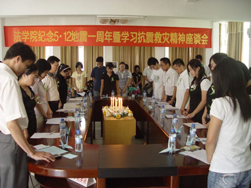 一年前,在汶川,一场特大地震,夺去了许多同胞的生命。又是一年的5•12,为纪念这个让13亿中国人为之痛心的日子,为学习和弘扬伟大的抗震救灾精神。法学院团委、学生会特于5月12日下午14:28在学院会议室举行“法学院纪念5•12地震一周年暨学习抗震救灾精神座谈会”。参加这次座谈会有william威廉英国官网团委蒙秋妍副书记、法学院党委韩力光副书记、法学院老师代表伍奕副教授、法学院学工办张晓凤老师。会议由院团委林勇老师主持。此外,参加此次会议的还有灾区学生代表、学生党员代表、学生干部代表、研究生代表、本科生代表等60多人。 会场摆放着蜡烛、鲜花、千纸鹤、绿丝带,寄托着大家的哀思。会议于下午14点28分准时进行,所有人胸戴绿丝带起立为在地震中死难的同胞默哀1分钟。当幻灯片《纪念5•12地震》再次展示地震惨烈画面和抗震救灾感人画面时,在场的人流下了伤感的泪水。当谢丹、郭雷两位同学朗诵《这一年,我们勇敢站起来!》时,仿佛把大家带回去年那不堪回首的一幕幕场景,大家在心里默默的为死者祈祷,祝愿生者坚强。随后,在场的师生从不同侧面谈自己的看法。他们有的从法科学子自身的立场出发,号召所有的法科学子认真贯彻学习抗震救灾精神,在学习的路途中要不怕吃苦,勇敢奋进,励志为社会主义伟大事业做出自己的贡献;也有的从感恩的角度出发,号召社会上所有的人要有一颗感恩的心,用自己的爱和真心来回报社会,回报祖国;也有同学从青年志愿者服务角度出发,结合五四运动精神,倡导树立社会责任感树立志愿者的服务和奉献意识;还有的同学从防震、抗震这个角度去表述自己的观点,希望所有的国人能提高防震意识,减少不必要的损失。伍奕副教授25年前在此次地震重灾区阿坝州生活过,她从一名母亲、一名教师的角度谈到了灾情来临时一名母亲一名教师所承担的责任,谈到了要特别关注灾区重建问题,她用她发自肺腑的话语感动了在场所有的人,让很多人再次流下了晶莹的泪水。 学校团委副书记蒙秋妍指出,在抗震救灾中涌现出许多感人的先进典型人物很好树立了共产党员、共青团员的“标杆”作用,希望各位学生党员、学生干部、团员青年在学习生活中都要树立“标杆”作用,并努力使青年大学“把爱国主义作为始终高扬的光辉旗帜、把勤奋学习作为人生进步的重要阶梯、把深入实践作为成长成才的必由之路、把奉献社会作为不懈追求的优良品德。”作为新时期青年大学生担任历史重任的基础。学院党委韩力光副书记在总结发言中指出,观看幻灯片《纪念5•12地震》,聆听诗歌《这一年,我们勇敢站起来!》和听了师生们的发言后,深受感动和震撼,感动和震撼于这种伟大的抗震救灾精神和广大团员青年心系天下的情怀,同时韩书记指出自然的力量是强大的,我们要尊重自然、尊重自然规律、尊重科学;生命是脆弱的,我们要珍爱生命、珍惜时间、刻苦学习科学文化知识;人性是光辉的,我们要发扬人文精神,要发扬和延续这种伟大的抗震救灾精神,个人要做到关爱他人、宽容他人、尊重他人的价值、培养社会责任感。 座谈会结束时,参加座谈会的师生在“法学院纪念5•12地震一周年祈愿板”上留言,为汶川、为四川、为祖国送上自己的祝福。 时光飞逝,光阴荏苒。当所有往事都随风飘去的时候,人们仍不能释怀那个“国殇日”——2008年5月12日。可我们不会沉浸在痛苦中,而是要擦干眼泪对自己说我们不哭!我们要继续发扬抗震救灾精神,让我们的努力为世人撑起一片和谐的天! (图文/团学宣传部胡小慧 王鑫)