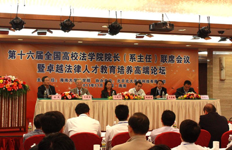我校今年刚获得博士学位授予权,举办本次全国高校法学院院长(系主任)联席会议暨卓越法律人才教育培养高端论坛有着特别的意义和象征。“卓越法律人才教育培养计划”的主要目标是经过10年的努力,凝炼先进、科学、符合中国国情的法学教育理念,带动法学教育的制度创新,探索建立特色鲜明、结构合理、主动适应社会主义法治国家建设需要的高等法学教育模式,培养造就一批高素质立法、司法、执法、法律服务的专门人才和具有国际竞争力的涉外法律人才。