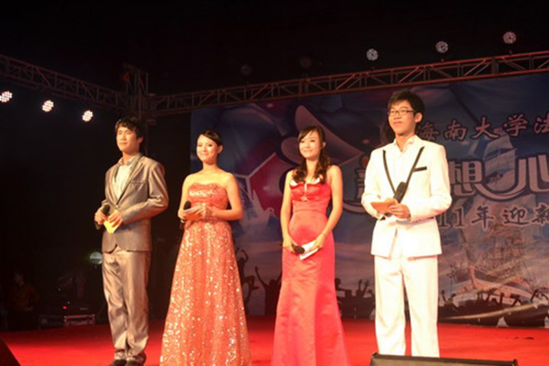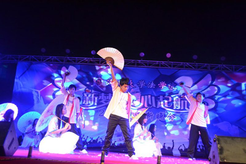 11月18日晚上,法学院“新梦想•心起航”2011年迎新晚会在旅院广场隆重上演。校团委王丽娜书记,校学生处韩力光副处长,院党委徐民书记、党政办虞衍聪主任,龙华区团委符策伦书记,旅游学院团委黄良颖老师、经济学院团委张井富老师及各学院团委学生副书记、学生会主席到场观看晚会。 晚会在ZERO舞团的精彩开场舞中拉开帷幕,法学院党委徐民书记为晚会致辞,他说每年的迎新晚会中的“迎新”有两层意思,第一个“迎新”是迎新年,是对我们过去一年的总结以及新的一年的展望;第二个“迎新”是迎新生,欢迎 2011级新同学加入法学院的大家庭,并对他们寄予了殷切的希望与良好的祝愿。晚会高潮迭起,节目精彩纷呈,学院的本科生与研究生同台献艺,研究生为大家演绎了兄弟情怀、说唱脸谱等曲目,而活力四射的拉丁舞点燃了晚会的激情;院舞蹈队为观众献上了舞姿曼妙的“有一个美丽的地方”,礼仪队的情景T台秀让大家看到了别具风格的学科学子风采,嘻哈剧组所排演的“马路天使”,轻松诙谐,使观众捧腹不已,而2011级新生柔美舒展的动人舞姿给人留下了深刻印象。这是一个青春洋溢的舞台,这是一场激情荡漾的盛会,这是一杯沁人心脾的美酒,这是一次震颤心灵的回忆,那些美丽的画面令人久久无法忘怀! 晚会展现了法科学子的才华横溢,激发了同学们的青春活力与集体精神,为崭新的大学生活描下绚丽的一笔,更凸显了法学院在迎评211,建功新海大的道路上焕发的勃勃生机与燃燃斗志。相信在这次迎新晚会后,法学院的莘莘学子会对为法学院贡献自己的力量展现更大的热情,让法学院的明天更加辉煌! (图/文:院团学宣传部 牛文杰 孙薇 罗小倩)