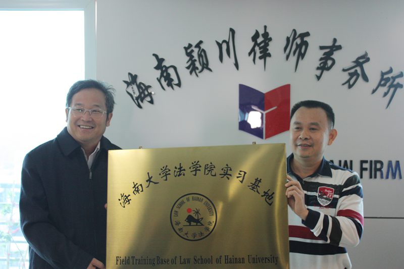 在徐民书记与陈帆主任揭牌之后,陈帆主任代表颍川所全体律师对我院教师的到来表示欢迎,他指出建设实习基地为双方合作搭建了交流平台,更是颍川所队伍建设提高的标志,将进一步提高颍川所的综合竞争力。陈主任也表示,他将努力建设实习基地,与法学院共同培养优秀的法律人才。 接着,王崇敏院长对颍川所为法学院建设的支持表示感谢!他说,颍川所在海南律师界具有较强的综合实力,与我院共建实习基地,为法学院教学提供平台,将进一步提高学生的法律实务能力,促进法学学科的建设与人才培养。他也希望颍川所能够努力探索建设实习基地,打造样板实习基地,为各实习基地建设提供宝贵实践经验。 最后,海口市司法局公律处陈振崖处长,他对法学院和海南颍川律师事务所共建实习基地表示祝贺,希望双方加强合作与交流,优势互补,源源不断为海南国际旅游岛建设输送高素质法律人才。