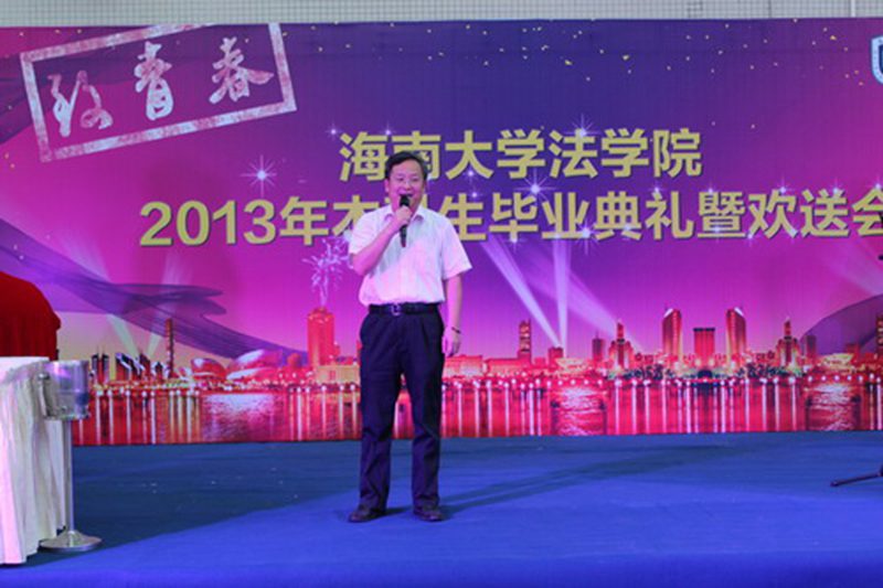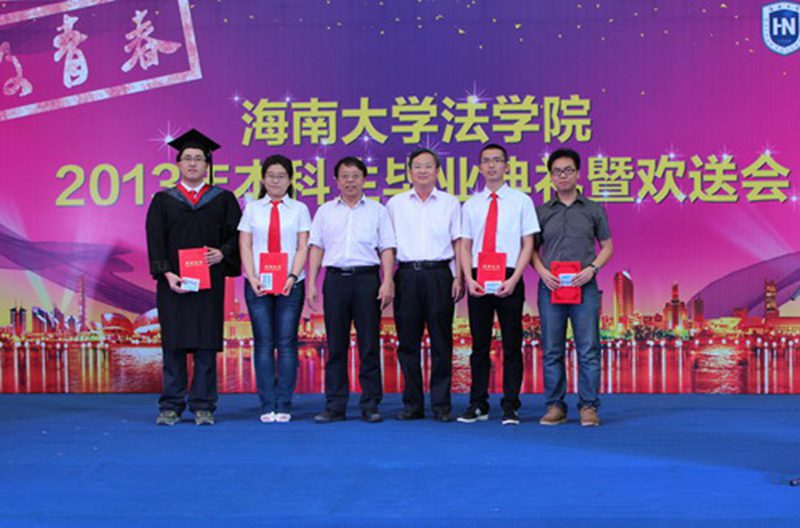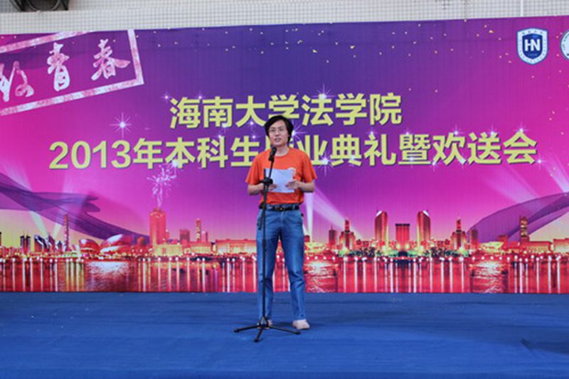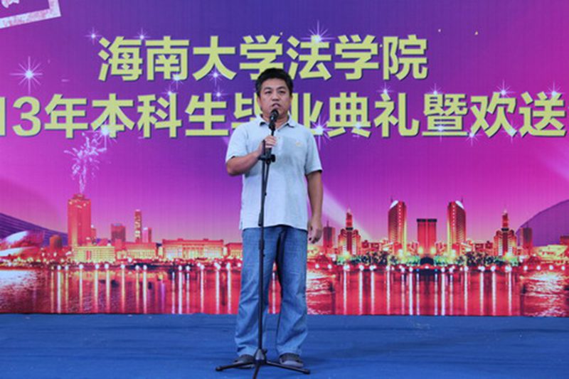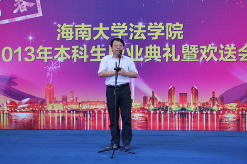5月14日下午,法学院在社科楼广场隆重举行了2013届本科生毕业典礼暨欢送会。学生处处长符成彦、副处长韩力光、校团委副书记黄小欧、法学院党委书记徐民、院长王崇敏、副院长王琦、宁清同、叶英萍及2009级全体毕业生与学院师生代表参加了会议。毕业典礼由院党委副书记杨智平主持。 毕业典礼上,王崇敏院长发表了热情洋溢的毕业致辞。他首先代表全院教职工对即将毕业,奔向美好前程的同学们表示最诚挚的祝贺和最衷心的祝愿,并向为学生的成长倾注了大量心血的老师、家长和社会各界人士表示衷心的感谢。王院长说,过去的四年是法学院提升发展最快的四年,各位毕业生作为见证者和参与者,为学院的快速发展贡献了积极的力量,对此他代表全院教职工表示衷心的感谢。王院长还给所有的毕业生提出了殷切的希望,希望毕业生们志存高远、坚持学习、善于合作、积极进取、任劳任怨、勇于创新,做一个正直、宽厚的人。王院长最后对同学们说:“四年四度琼崖春,一生一世海大人。法学院永远是大家的精神家园,永远与大家一起分享喜悦,一起分担困难,祝愿大家放飞梦想、生活幸福”。 毕业典礼上,韩立收副教授作为教师代表发言,韩老师说毕业生们有的是青春和活力,有的是自信和豪迈,有的是勇敢和激情,他希望同学们成为一名称职的法律人,拥有独立的人格和自由的精神。海南省律师协会副会长廖晖作为校友代表发言,他希望同学们能够带着最真实的自我勇敢的追梦。李春鹤同学代表毕业生表达了即将毕业的学子对母校的感恩、眷恋与祝福。 毕业典礼上,孙世民、石春雷、宋莉、李瞿飞四位同学被评为法学院优秀风采学子。2013届毕业生向培育了自己四年的法学院送上了一份珍贵的礼物,它代表着每一位毕业生对于学院的感恩和祝福。 毕业典礼后的欢送会上,徐民书记致祝酒词,徐民书记和王崇敏院长与学生们共同起开了香槟,在场的所有师生共同举杯,感恩过去的四年,展望美好的未来。师生们还一起联欢观看了欢送的节目,大家在祝福墙上写下了对学院、同学和美好未来的深切祝福。