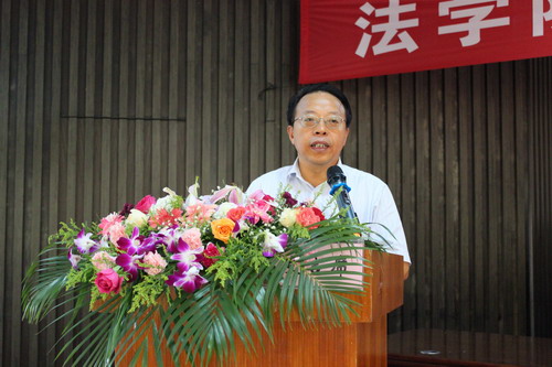 大会在庄严的国歌声中拉开帷幕。王崇敏院长发表了慷慨激昂的讲话,他对2013级新同学的到来表示最热烈的欢迎。王院长介绍了海大法学院建院以来的历史、办学成就和学科建设现状,介绍了法学院雄厚的师资力量和硬件设施,介绍了法学院成为卓越法律人才培养基地和全国大学生校外实践教学基地为学生带来的新平台、新机遇。典礼上,王院长也对新同学提出了三点希望,一要刻苦学习、潜心钻研,夯实法律知识基础;二要阳光生活、健康成长,过丰富多彩的大学生活;三要互帮互助、团结友爱,以法学院为家,为法学院添光加彩。最后,王院长希望同学们以高昂的斗志,以海南天气般的热情投入到学习生活中去,不辜负家庭、社会、民族的期望,不辜负中国高等教育、中国法制建设的期望。