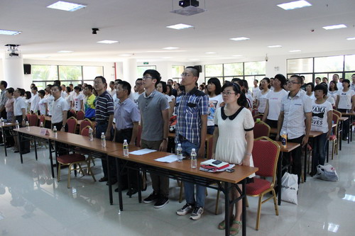 “五星红旗迎风飘扬,胜利歌声多么响亮,歌唱我们亲爱的祖国,从今走向繁荣富强……”典礼最后,全体师生齐唱《歌唱祖国》。全体2013级新生将从这里出发,开启人生新的征程。