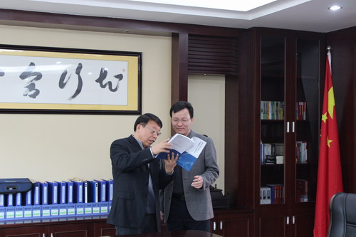 王崇敏副校长向屯昌县人民法院院长陈祥智赠送实践教学参考书