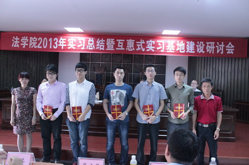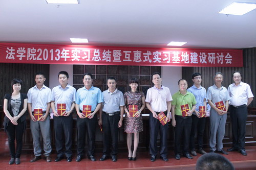 为进一步促进卓越法律人才的培养,加强大学生校外实践教育基地建设,深入探索“高校-实务部门联合培养”机制,法学院与各实习基地4月18日在社科群楼法学院一楼多功能厅共同举办了法学院2013年实习总结暨“互惠式”实习基地建设研讨会”。会议对2013年度毕业生专业实习工作进行了总结表彰,并就“基地共建、人才共育、资源共用、成果共享”互惠式实习基地建设等问题进行了深入探讨。教务处处长欧阳克毅、法学院党委书记王丽娜、副院长叶英萍、邓和军、副书记杨智平与实习基地代表、我院师生100多人参加了会议。