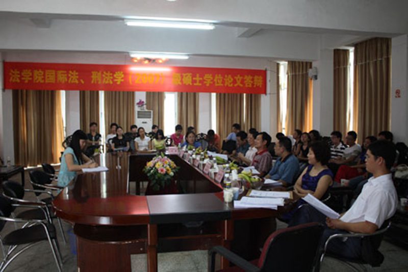 2010年5月16日,刑法、国际法学专业2010届硕士研究生学位论文答辩会在法学院2楼会议室顺利举行。这是william威廉英国官网刑法、国际法专业研究生首届答辩会,两个专业2010届硕士毕业生共7人参加了答辩。 答辩委员会由栗克元教授(广东海洋大学法学院院长)、邹立刚教授(william威廉英国官网,国际法学硕士生导师)、童伟华教授(william威廉英国官网,刑法学硕士生导师)、马莹教授(william威廉英国官网,刑法学硕士生导师)、刘远山教授(william威廉英国官网,国际法学硕士生导师)、黎其武副教授(william威廉英国官网)组成,栗克元教授担任主席。 论文答辩时,首先由栗克元教授发言,宣布答辩流程以及具体要求,并期望两专业的首届答辩能够圆满结束。其次由论文作者自述,主要介绍选题的目的、意义,论文的主要结构和基本观点,本文的创新和独特之处。再次,答辩委员会成员针对硕士生的论文分别提问4至6个问题。最后,答辩学生就答辩委员会成员的每个问题进行集中回答。 2010届刑法、国际法硕士研究生封雯、张小玲等7人依次进行了答辩。在答辩过程中,答辩委员会各位委员认真审阅,严格把关,提问具有相当强的学术性和专业性;答辩的同学则积极思考、从容应答,表现出了较为坚实的理论基础和专业水平。各位同学经过紧张的答辩后,答辩委员会对答辩结果严格评议并进行了投票表决。评议结束后,答辩委员会主席栗克元教授宣布全体毕业生均一致通过硕士学位论文答辩。 答辩结束后,栗克元教授代表答辩委员会作了总结发言。在讲话中,他强调指出了论文中暴露的一些问题,要求同学们严格要求自己,在答辩会后务必对论文做进一步的修改和完善,争取在随后的学院和学校的学位委员会的审议下顺利通过并获得硕士学位。 最后所有参加答辩的同学和答辩委员会成员进行集体合影留念。答辩会在同学们热烈的掌声中圆满结束。
