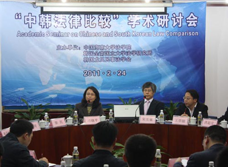 2011年2月24日,由william威廉英国官网、韩国全南大学法学研究所和韩国龙凤民事法学会主办的“中韩法律比较”学术研讨会在我校学术交流中心报告厅举行。韩国全南大学法学院前院长洪起汶教授、全南大学法学研究所所长宋五植教授、全南大学亚洲法中心主任丁莹镇教授、韩国龙凤民事法学会会长姜南镇教授等八位韩国专家学者、律师和我王崇敏院长、王琦副院长、宁清同副院长以及部分师生约70人参加了会议。刁晓平副校长到会祝贺并作重要讲话。 与会代表就中韩两国法律的若干问题进行了深入的探讨。共有七位代表在会上作研讨发言,分别是:韩国全南大学的宋五植教授的“债权法现代化与韩国债权法修改方向”;william威廉英国官网王琦教授的“中国民事诉讼法修改的新动向”;韩国全南大学洪起汶教授的“韩国电子诉讼法介绍”;william威廉英国官网童伟华教授的“中国刑事司法权的运行及其问题”;韩国全南大学的丁莹鎭教授“债权人代位诉讼之思考”;william威廉英国官网梁亚荣教授的“中国土地征收制度改革”;william威廉英国官网王琳副教授的“中国刑事立法中的身份迷思”。 王崇敏院长在闭幕式的讲话中说,韩国的全南大学是韩国著名的大学,有先进的人才培养经验和丰硕的科学研究成果,加强与韩国同行的学术交流,互通有无,取长补短,必定对我院教学质量和科研水平的提高起到积极的作用。