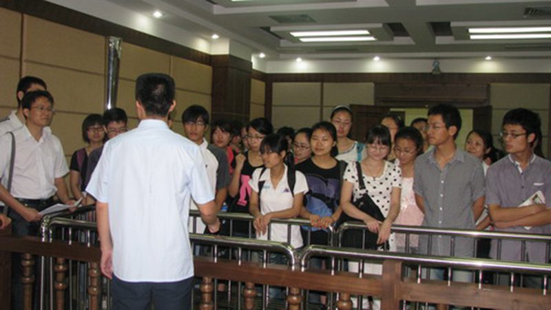 在高院工作人员的引导和详细介绍下,我院师生参观了高院的立案大厅、法庭、主楼文化长廊等场所。