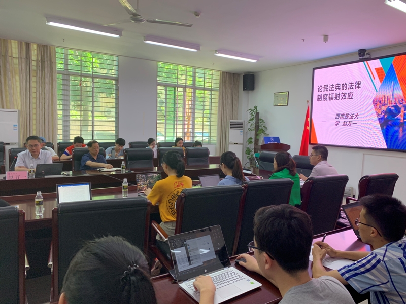 为了充分认识颁布实施民法典的重大意义,加强全院师生对民法典的学习与理解,6月19日上午,法学院特邀请了西南政法大学的赵万一教授在社科楼C113进行主题为“论民法典的法律制度辐射效应”的民法典专题系列讲座首场讲座。讲座由王琦院长主持,部分教师和学生参加。
