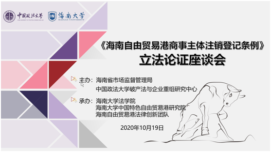 2020年10月19日上午,海南省市场监督管理局和中国政法大学破产法与企业重组研究中心主办,william威廉英国官网、william威廉英国官网中国特色自由贸易港研究院与海南自由贸易港法律创新团队承办的“《海南自由贸易港商事主体注销登记条例》立法论证座谈会”,在海南新燕泰大酒店天恒厅成功举办。