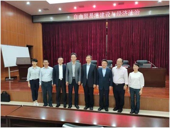 2020年12月13日晚,北京大学法治与发展研究院院长、经济法研究所所长、教授、博士生导师、中国法学会经济法学研究会会长张守文教授,上海交通大学特聘教授、博士生导师、法学院经济法学科带头人、竞争法律与政策研究中心主任、中国法学会经济法学研究会副会长王先林教授,武汉大学法学院教授、博士生导师、武汉大学竞争法与竞争政策研究中心主任、中国商业法研究会副会长孙晋教授,莅临我校五教二楼报告厅,举行主题为“自由贸易港建设与经济法治”讲座。本次讲座由王琦院长主持,法学院部分老师、本科生、硕士、博士研究生等200多人积极听取了讲座。