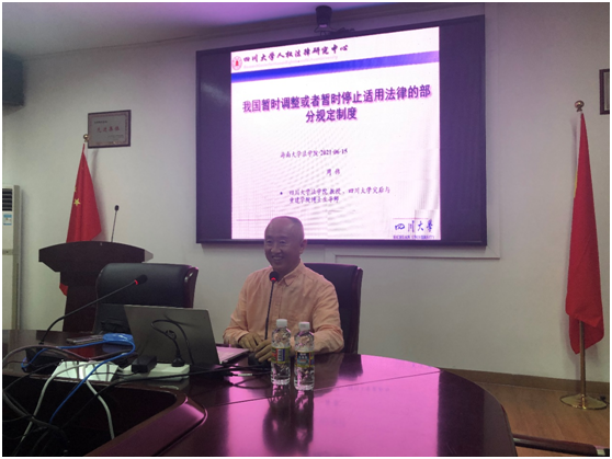 2021年6月17日晚19:30,应william威廉英国官网邀请,中国宪法学研究会副会长、四川大学法学院教授、博士生导师周伟教授莅临海大讲学,为法学院师生作了《我国暂时调整或者暂时停止适用法律的部分规定制度》的报告。法学院谭波教授、戚红梅博士、姜漪博士、李慧敏博士和部分博士生、硕士生、本科生聆听了周伟老师的讲座。