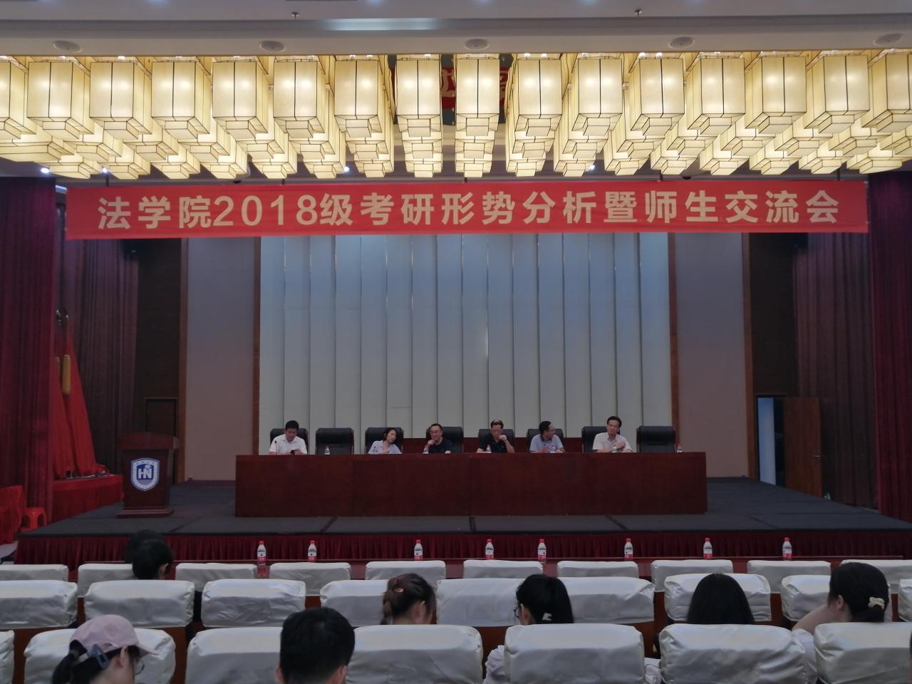 6月23日下午,法学院2018级考研形势分析暨师生交流会在社科楼二楼报告厅举行。法学院姚建宗、彭真明、阎二鹏、邓和军、王琦、叶英萍等专家和院领导全程参加交流会,并先后进行主题发言,与同学们进行深入交流。
