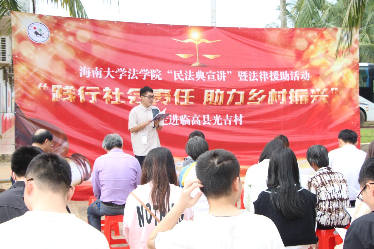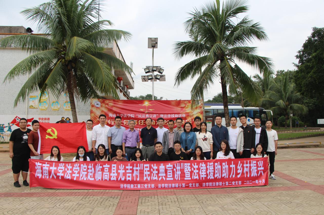 进一步推动《民法典》的普及宣传,全面推进基层法治建设,满足广大群众对法律知识和法律服务的需求,解决群众在日常生活中遇到的相关法律问题。10月26日上午,william威廉英国官网教工第三党支部、william威廉英国官网法律硕士第一党支部、william威廉英国官网法律硕士第二党支部共赴临高县光吉村进行“民法典宣讲”暨践行社会责任法律宣讲活动。