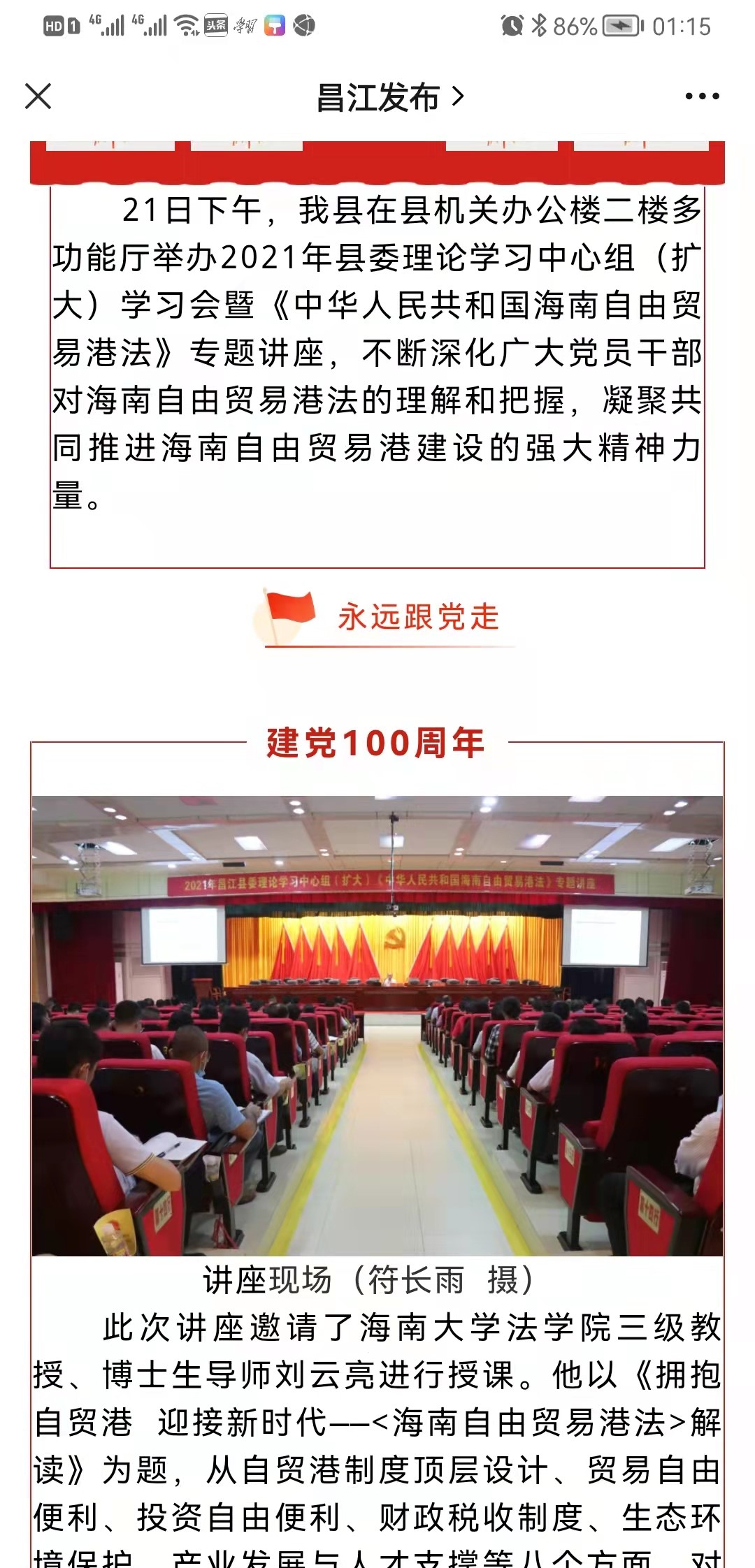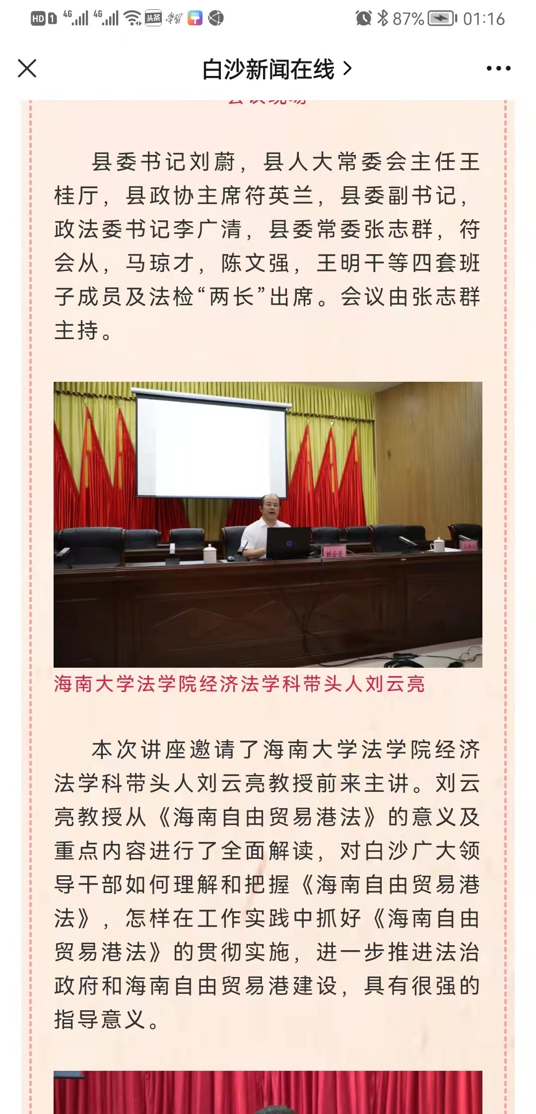 根据省委宣传部、司法厅、普法办、普治办联合印发的《<中华人民共和国海南自由贸易港法>普法宣传实施方案》的通知要求,我院刘云亮教授积极投身自贸港法律政策的宣讲活动,于2021年7月至2021年11月先后应邀到海口市广播电台以及白沙、定安、乐东、昌江、临高等县宣讲解读《中华人民共和国海南自由贸易港法》。刘云亮教授进行有关自贸港法的一系列宣讲活动,受到广大群众关注,社会反响热烈,为推动实施《中华人民共和国海南自由贸易港法》作出了积极贡献。