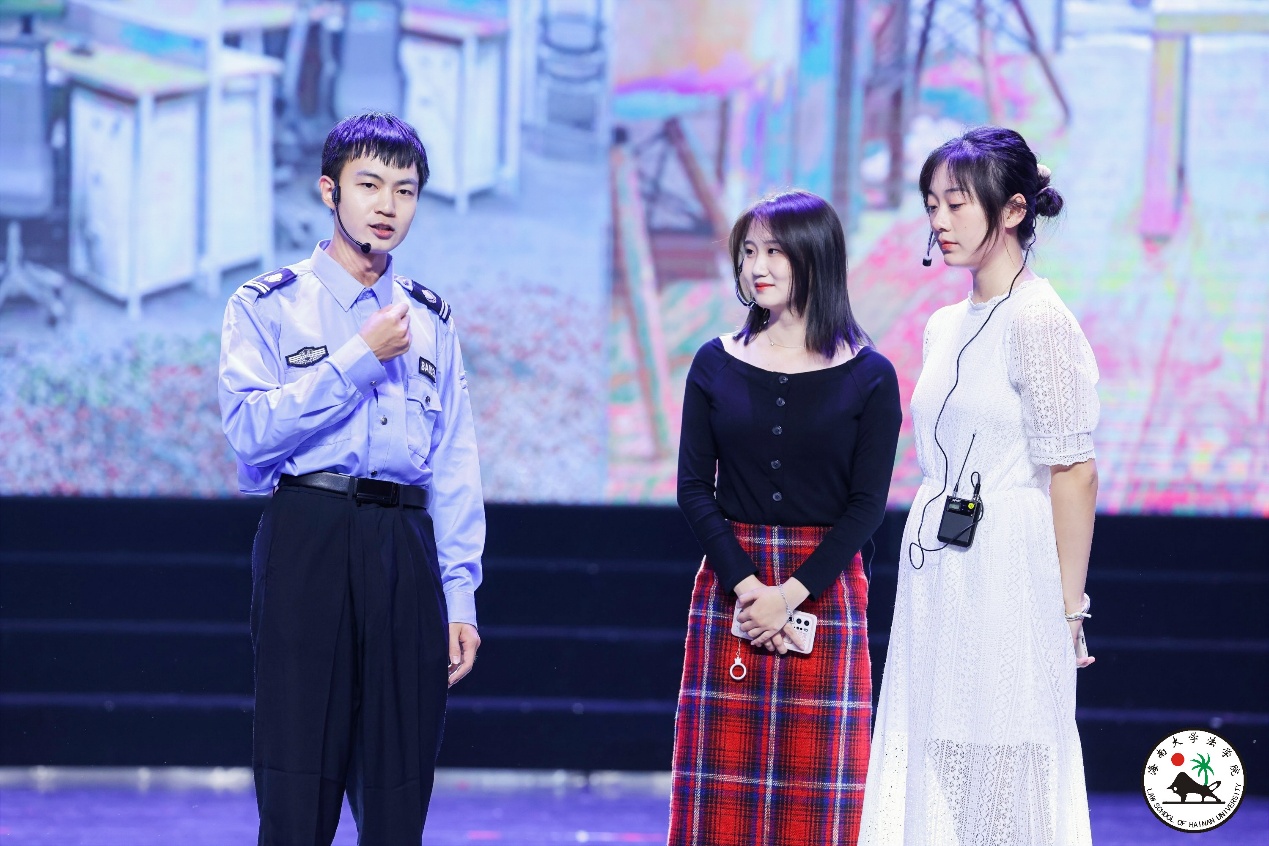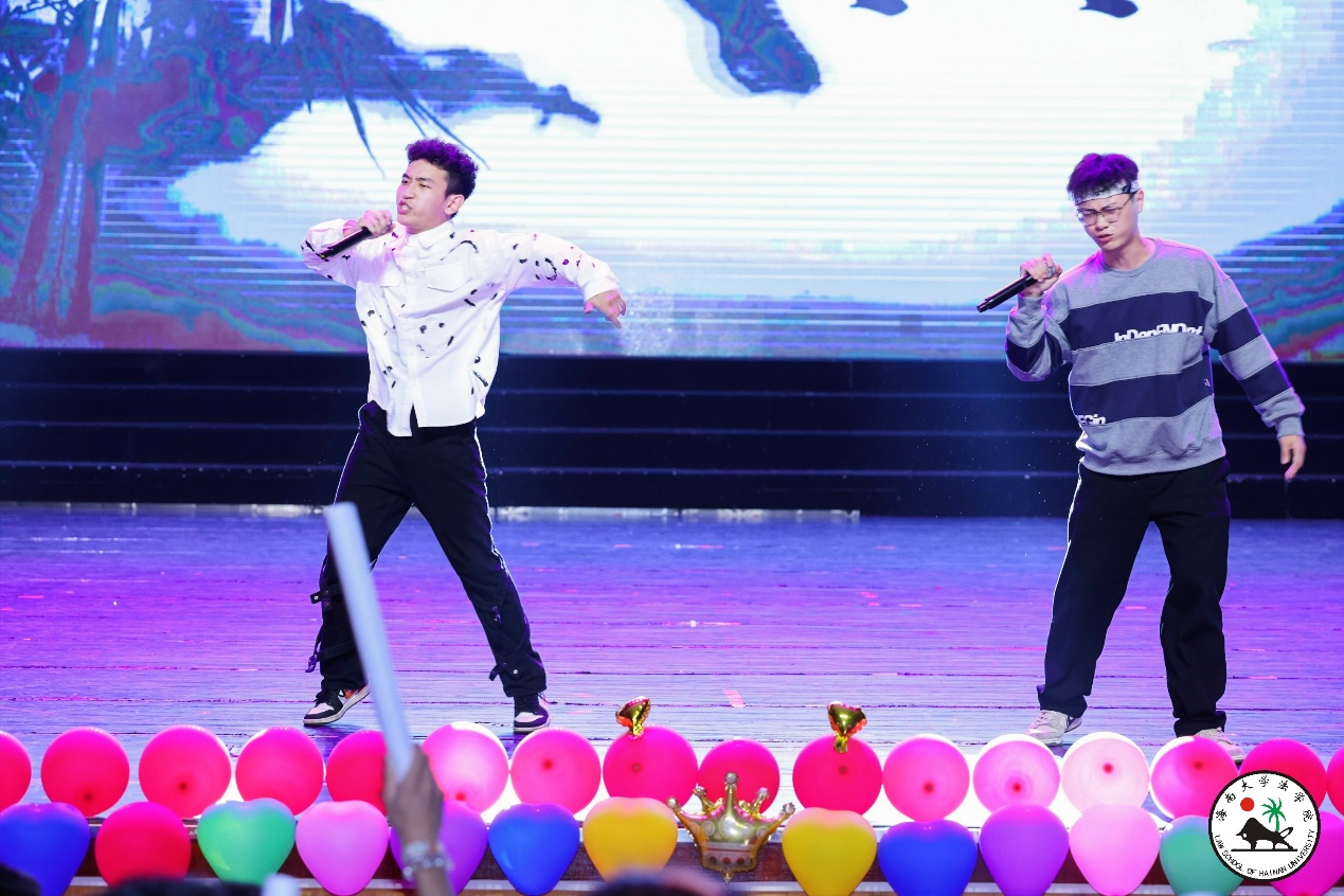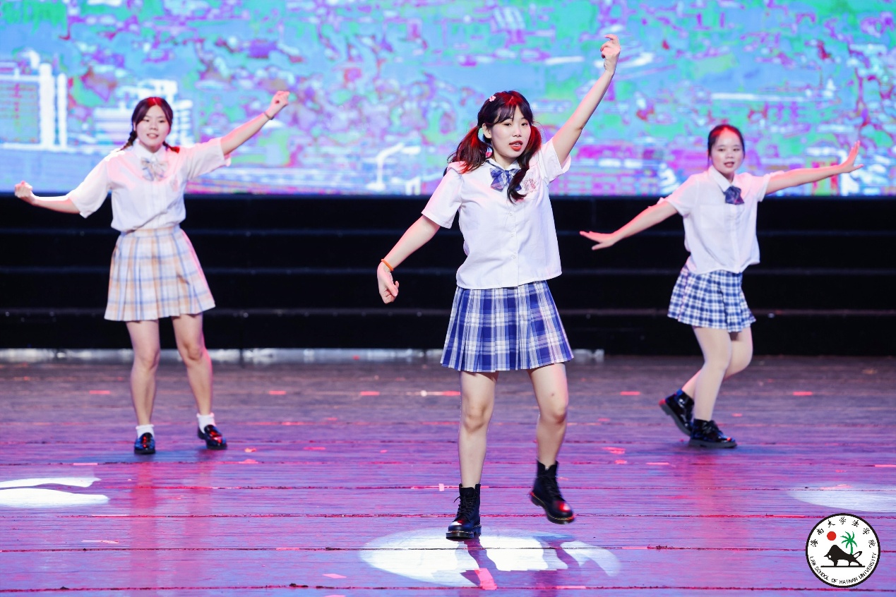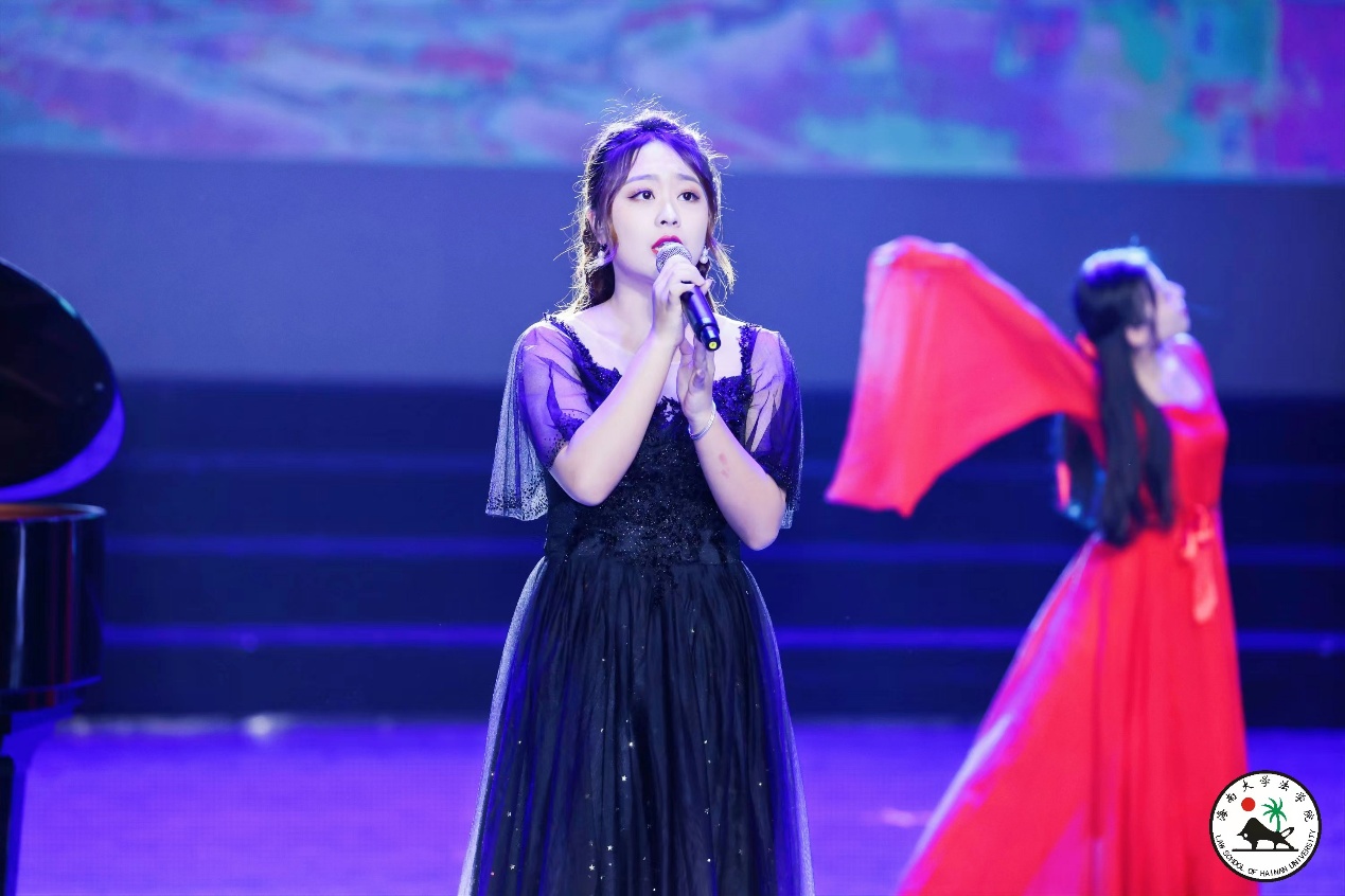 晚会分为上下两个篇章。由2019级法学1班马杰和2019级法学文科实验班舒赐雯为大家献上原创歌曲《霓虹派对》,充满活力的演唱让大家感受到了初恋中的怦然心动;法学院工会选送的教师节目《书简舞》让大家看到了老师们不只在三尺讲台显风采,在舞蹈中也是柔美四溢。2020级法学1班带来了防电信诈骗情景剧《郝单纯》,让大家在剧中感受到了电信欺诈手段的多样性,也给在场所有人提出了防诈小妙招;2020级法律(非法学)班的陈露一首轻快的俄罗斯小调《达尼亚》,让在场的观众都陶醉其中;一曲《大鱼海棠》,又把我们带回到最初的相遇;舞蹈串烧《触摸天空》让大家都感受到了年轻和活动,感受到了梦想和热爱。2019级本科生和2020级本科生的舞蹈《Cleopatra》动感十足、热情洋溢,将晚会又拉向了高潮;笑声工作访《今夜说相声》也引来现场笑声连连;由2020级法学3班带来的军装舞蹈《给青春理一个短头发》又激起了无数“红妆”女孩的军营梦想;由法学院学生党员联合会、2021级法律(法学)班出演的舞台剧《破晓》让大家身临其境,穿越时空感受到了青年的热血和勇气;由2019级法学1班“双马尾”马杰、陈刘炜带来的说唱歌曲《沧海一声笑》激情澎湃,将晚会又推向了一阵高潮,现场欢呼不断。