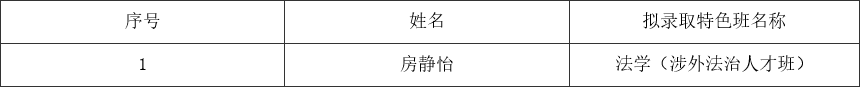 2022级房静怡同学在2022级法学(涉外法治人才班)拟录取名单公示期间提出异议。经学院教学指导委员会讨论,认可房静怡同学提出的异议理由,同意将其列入拟录取名单。现将拟录取名单公示如下。如对以上公示有异议,请于2023年4月21日17:30前通过书面材料反映,反映情况和问题必须实事求是,有事实依据,应签署真实姓名和联系方式,以便调查核实反映的问题。